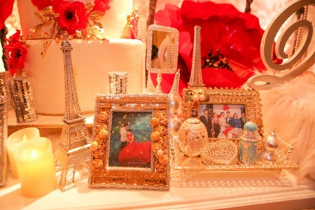 Những tấm hình cưới ngọt ngào của vợ chồng Vân Trang được lồng trong khung ảnh thiết kế cầu kỳ. |
