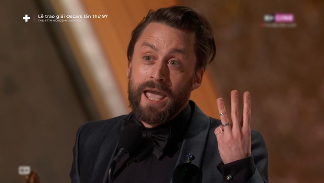 Robert Downey Jr. công bố giải Nam diễn viên phụ xuất sắc cho Kieran Culkin. Kết quả không có gì bất ngờ khi nam diễn viên đã càn quét mùa giải thưởng điện ảnh trước đó. Đây là lần đầu tiên Kieran nhận đề cử Oscar và thắng luôn tượng vàng. Anh chính là em trai của Macaulay Culkin - nam diễn viên chính của loạt phim Ở Nhà Một Mình quen thuộc với khán giả Việt Nam.