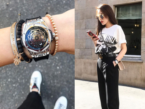Đắt tiền nhất trong set đồ vi vi trời Tây của Kỳ Duyên là chiếc đồng hồ hiệu Hublot có giá tiền tỉ.