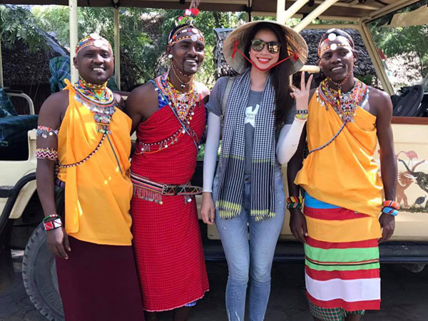 Phạm Hương đội nón lá, đeo khăn rằn trong suốt hành trình ở Kenya