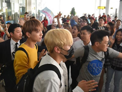 Các thành viên Seventeen vừa hạ cánh xuống sân bay Nội Bài. Rất nhiều fan cầm theo cà rốt để chào đón nhóm nhạc 13 thành viên.