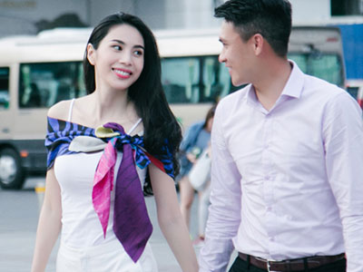 Thủy Tiên - Công Vinh tình tứ khi ghi hình cho kênh truyền hình thế giới