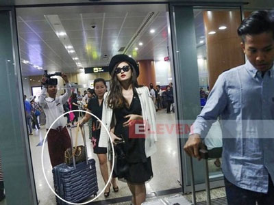 Á hậu Huyền My gây tranh cãi vì ảnh để mẹ đẩy hành lý ở Myanmar