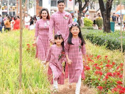 Bình Minh cùng vợ con diện áo dài dạo đường hoa