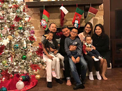 Nam ca sĩ được vợ chồng Hồng Ngọc và 3 con chào đón nồng nhiệt khi sang xứ cờ hoa biểu diễn, thăm bạn bè.