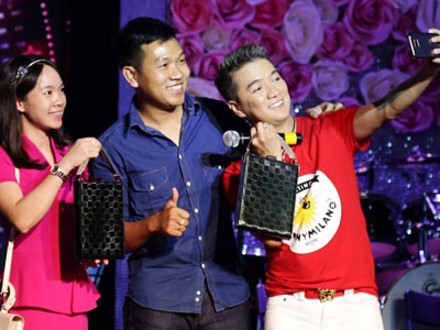 Nam ca sĩ trổ tài thuyết phục khán giả để lấy tiền đi từ thiện ở miền Trung.