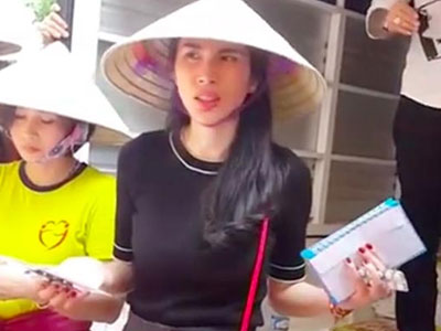 Á hậu Huyền My được người dân ôm chặt khi về miền Trung