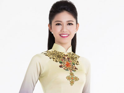 Người đẹp diện áo dài duyên dáng, đầu đội vương miện khi tham gia sự kiện của Đại học Ngoại thương Hà Nội.