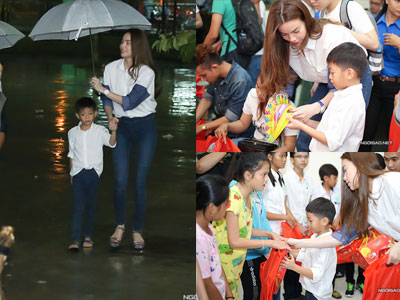Hồ Ngọc Hà đưa con trai đi tặng quà trung thu cho trẻ nghèo