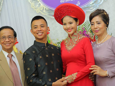 Hà Nhuận Đông hạnh phúc sánh vai vợ trong ngày cưới