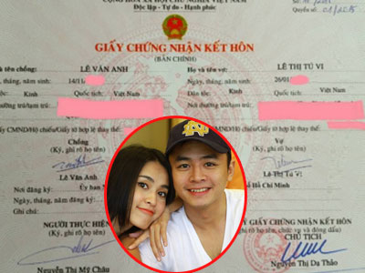 Văn Anh – Tú Vi hạnh phúc khoe giấy đăng ký kết hôn