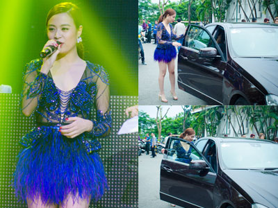 Cô được người nhà đưa đón bằng ô tô khi đến biểu diễn tại một sự kiện ở Hà Nội.