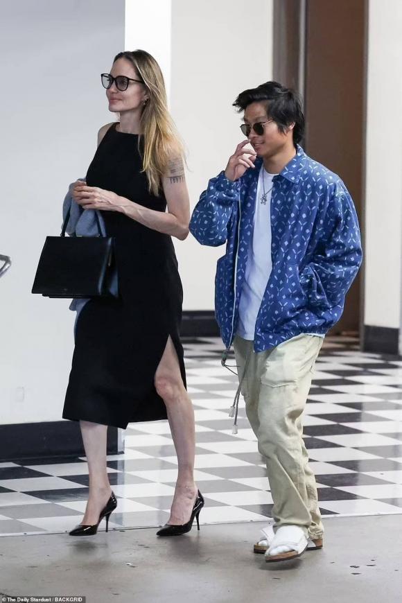 Mới đây, truyền thông đã ghi lại được hình ảnh Angelina Jolie đi ăn cùng cậu con trai của mình Pax Thiên. Đây cũng là động thái đầu tiên của Angelina Jolie sau khi chồng cũ Brad Pitt công khai bạn gái kém 29 tuổi. Có vẻ như chuyện hẹn hò của chồng cũ không mấy ảnh hưởng tới cuộc sống của mẹ con Angelina Jolie.