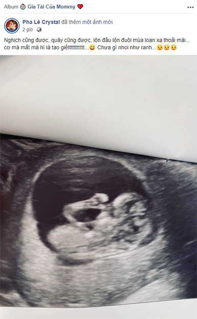 Cách đây ít giờ, nữ ca sĩ Pha Lê vừa khiến dân mạng xôn xao khi chia sẻ hình ảnh siêu âm lên trang cá nhân kèm lời nhắn nhủ: "Nghịch cũng được, quậy cũng được, lộn đầu lộn đuôi múa loạn xạ thoải mái, cơ mà đừng mắt hí. Chưa gì đã nhoi".