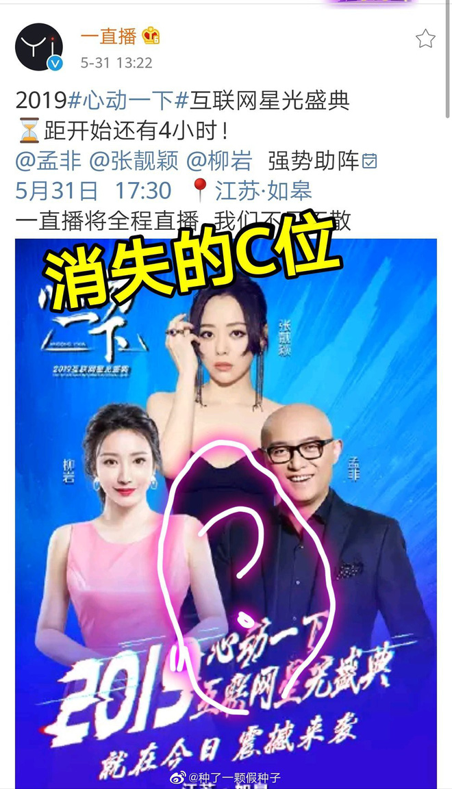 Sáng sớm ngày hôm nay, truyền thông xứ Trung đã kháo nhau về sự xuất hiện của Phạm Băng Băng trong 1 sự kiện diễn ra vào buổi chiều tối ngày 31/5. Poster của chương trình có hình ảnh của nữ diễn viên họ Phạm, Liễu Nham, Trương Lương Dĩnh,... Tuy nhiên, không biết vì lý do gì, poster này được sửa lại và cắt bỏ hình ảnh của Phạm Băng Băng.