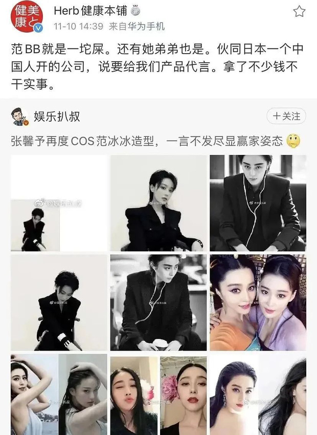 Cụ thể, vào ngày 10/11, một thương hiệu lớn đã chia sẻ 1 bài đăng so sánh Phạm Băng Băng và Trương Hinh Dư kèm theo một dòng nhắn gây xôn xao: "Phạm Băng Băng đúng là không ra gì, cả cậu em trai cũng như vậy", đồng thời cho hay hai chị em đã nhận một số tiền khổng lồ của thương hiệu nhưng không có động thái làm việc, hợp tác nào.