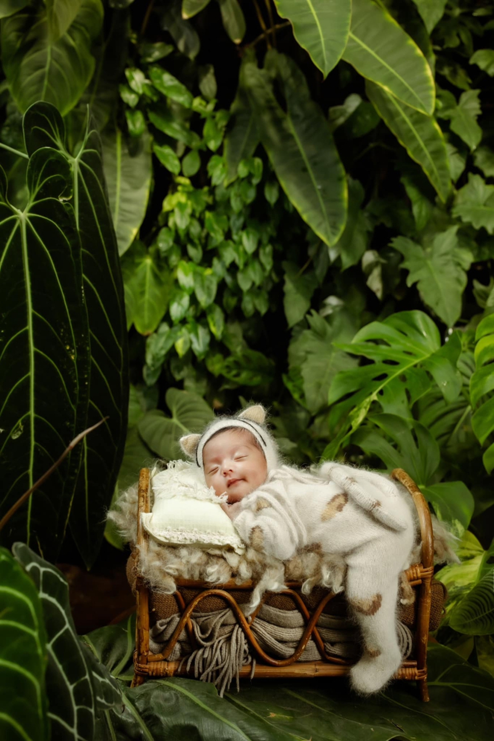 Vì muốn tạo nên bối cảnh xanh tươi cho khung hình,, nhiếp ảnh gia yêu cầu Phan Hiển ngắt cành lá để làm đạo cụ chụp ảnh cho bé. Phan Hiển ngắt một chiếc lá nhỏ xíu đưa cho Khánh Thi rồi than thở: "Tiếc đứt ruột". Nhưng ngay sau đó, anh lại phải hi sinh thêm một cành kiểng lá thật to để làm tấm lót cho con gái nằm. Phan Hiển ngắt cành lá với vẻ mặt tiếc nuối.
