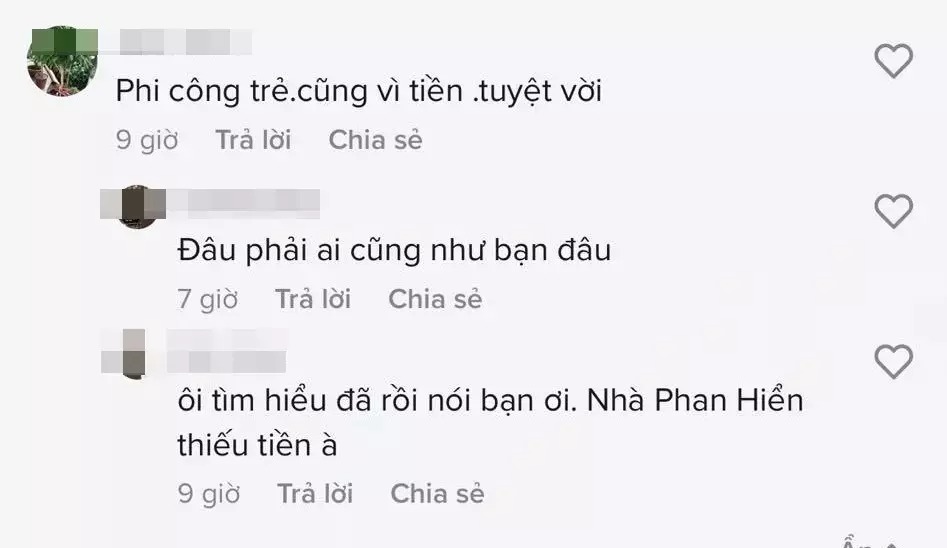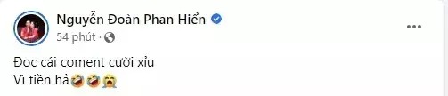 "Đọc cái comment cười xỉu, vì tiền hả?", Phan Hiển viết kèm, đính kèm loạt icon cười mỉa mai.