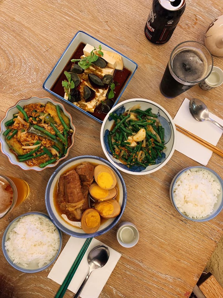 Mới đây, người đẹp tiếp tục chia sẻ trên trang cá nhân hành động ngọt ngào từ chồng. Đăng tải bữa cơm gia đình ngon mắt, cô viết: "Luôn nhớ lấy cho vợ đôi đũa màu xanh lá vợ thích".
