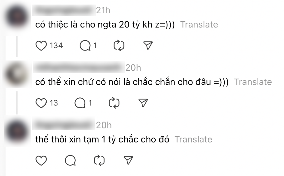 Bên dưới bài đăng, một cư dân mạng để lại bình luận hài hước: "Dễ thương quá, mình thích Hiếu lắm. Nếu phải cho chọn giữa Hiếu và 20 tỷ thì mình chọn 20 tỷ. Nhưng mà mình vẫn thích Hiếu lắm".