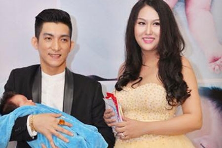 Vợ chồng Phi Thanh Vân tại lễ mừng đầy tháng con trai. Ảnh: TL |