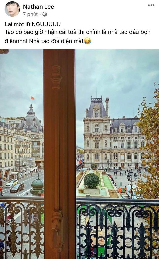Ngay sau động thái của phía Cao Thái Sơn, Nathan Lee đã lập tức đăng đàn đáp trả: "Một lũ ngu. Tao có bao giờ nhận cái Tòa thị chính là nhà tao đâu bọn điên, nhà tao ở đối diện mà". Song song đó, nam ca sĩ cũng đăng ảnh ở bên trong căn nhà ở thành phố Paris, đối diện Tòa thị chính để chứng minh.