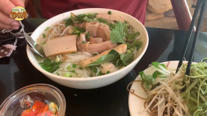 Khi nhân viên bê thực đơn ra, Khương Dừa quay cận cảnh cho khán giả xem. Có thể thấy, giá bán của quán Hoài Linh không hề rẻ, từ 60 ngàn đến 98 ngàn cho một bát bún mọc. Quán chỉ bán bún bò và bún mọc.