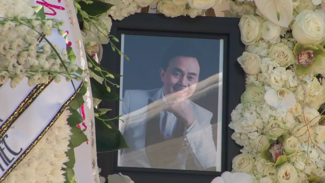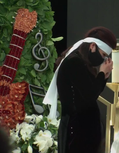 Phương Loan trực tiếp đứng đáp lễ những đồng nghiệp, bạn bè và người hâm mộ đến tiễn biệt chồng cô lần cuối.