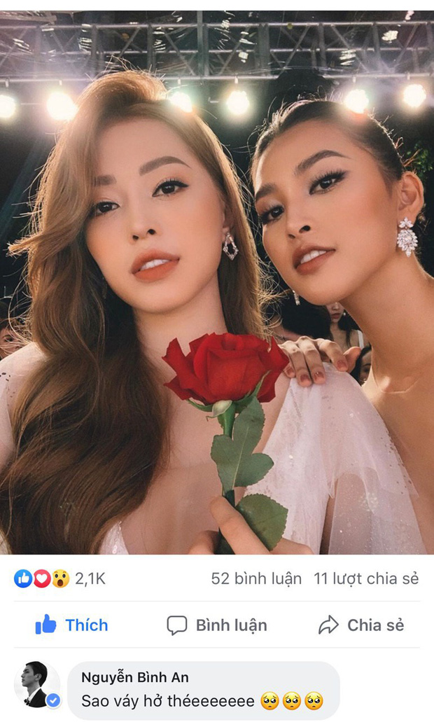 Mới đây, Á hậu Phương Nga vừa đăng tải trên trang cá nhân hình ảnh diện bộ váy khoe ngực hững hờ cùng với Tiểu Vy. Hai người đẹp đang cùng nhau có mặt trong một sự kiện thời trang. Trong khi người hâm mộ để lại nhiều lời khen ngợi về nhan sắc nổi bật của hai mỹ nhân Vbiz thì ngay lập tức, Bình An ý kiến bạn gái mặc chiếc váy khá hở. Động thái này cho thấy tình cảm của nam diễn viên với nàng Á hậu. Fan ngưỡng mộ tình cảm mà cả hai dành cho nhau, có người còn hối thúc cặp đôi mau chóng về chung một nhà bằng một đám cưới hoành tráng.