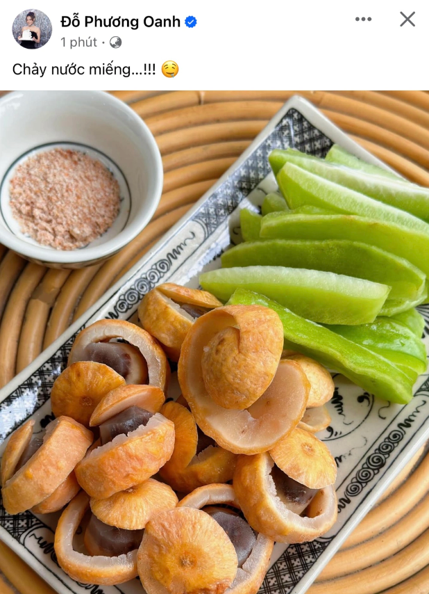 Chia sẻ một bức ảnh gồm những loại quả như sấu, khế kèm với chén muốn, Phương Oanh kèm theo dòng trạng thái "chảy nước miếng" khiến nhiều người liên tưởng đến một sự việc.