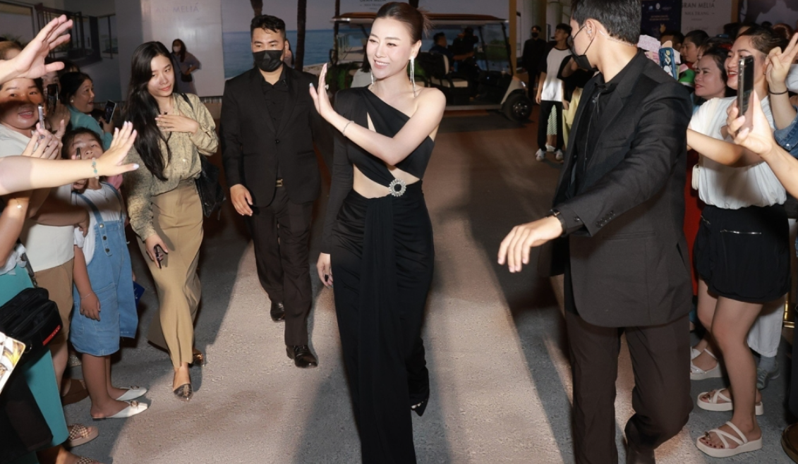 Do đó, lần trở lại này của Phương Oanh được công chúng đặc biệt chú ý, đặc biệt là nhan sắc của cô nàng. Phương Oanh diện chiếc đầm đen được cắt xẻ tinh tế khéo léo trưng trổ hình thể. Nữ diễn viên búi tóc gọn gàng kết hợp với nhiều trang sức sang trọng.