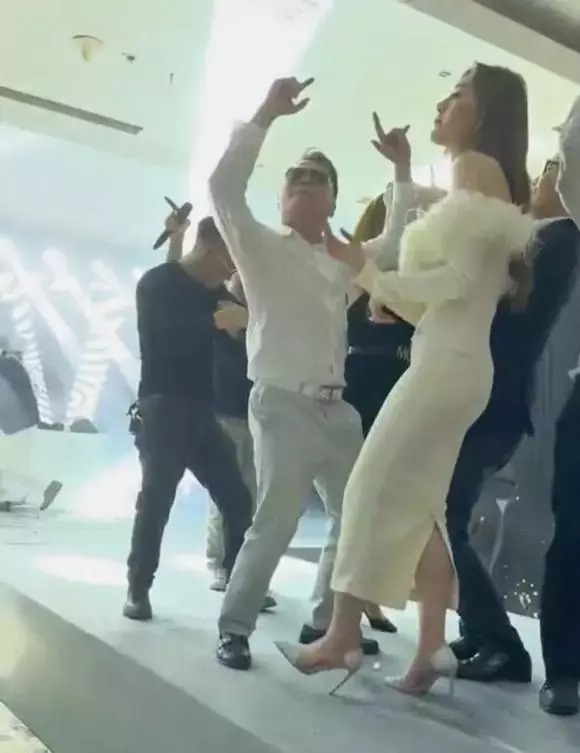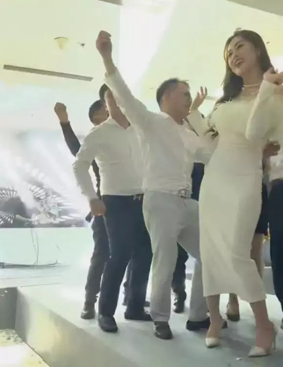 Xuất hiện ở buổi tiệc, cặp đôi cùng diện đồ màu trắng. Cả hai nhiệt tình "quẩy" với mọi người xung quanh.