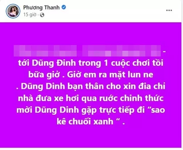 Cụ thể, ca sĩ Hoàng Dũng (hay còn gọi Dũng Đinh) đã đăng tải hình ảnh của 2 ca sĩ Hồ Quỳnh Hương và Như ý, đính kèm dòng trạng thái tiết lộ chuyện Phương Thanh từng dùng bạo lực với 2 ca sĩ này.