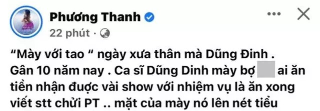 Bên cạnh công việc nghệ thuật, "chị Chanh" thời gian gần đây liên tục gây chú ý vì ồn ào đời tư. Điển hình là vụ đôi co của Phương Thanh với ca sĩ Dũng Đinh (Hoàng Dũng) vào tháng 3/2022 vừa qua.