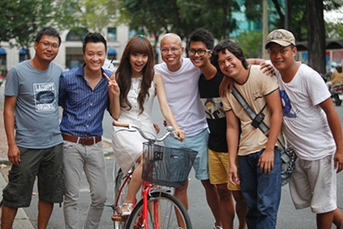 Ali Hùng Cường (áo đen) trên phim trường 'Vừa đi vừa khóc'. |