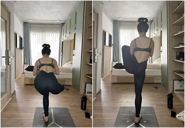Trước đó, bà xã Lý Bình thi thoảng chia sẻ hình ảnh thực hiện động tác uốn dẻo, giúp sức khỏe, tinh thần tốt hơn.