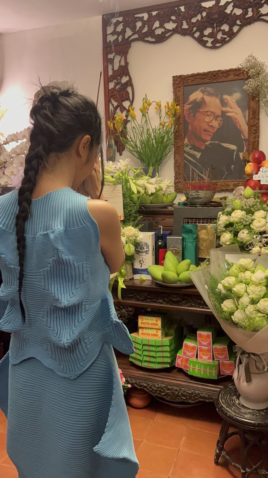 Tối cùng ngày, Hồng Nhung và bà Trang Lê đến thăm căn nhà nơi nhạc sĩ Trịnh Công Sơn từng sinh sống ở 47C Phạm Ngọc Thạch (47C Duy Tân cũ, TP.HCM) và thắp hương tưởng niệm nhân ngày giỗ cố nhạc sĩ.
