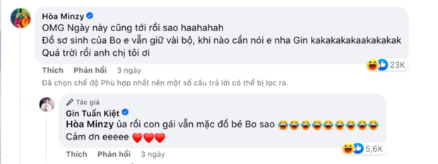 Trước đó, Hoà Minzy cũng mong được "nhả vía" sinh con, còn nhiệt tình đòi tặng lại những bộ đồ sơ sinh của bé Bo cho Gin Tuấn Kiệt và Puka để cả hai nhận may mắn sớm lên chức. Đáng nói, Gin Tuấn Kiệt còn thắc mắc rằng liệu em bé là con gái thì có mặc được đồ của quý tử nhà Hoà Minzy hay không. Màn tương tác của Gin Tuấn Kiệt và Hoà Minzy cũng khiến cư dân mạng cho rằng nam diễn viên ngầm xác nhận sắp làm bố bỉm. Tuy nhiên, trong lần lộ diện gần nhất, Puka trông vẫn rất thon gọn, cô còn nhiệt tình bày trò kéo lôi ca sĩ Anh Tú để giật lại ông xã tương lai.