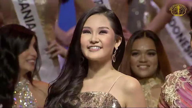 Nhan sắc ấy lại tiếp tục khác lạ tại Miss Intercontinental 2018, không phải môi tều mà là cả gương mặt như sưng phù căng mọng