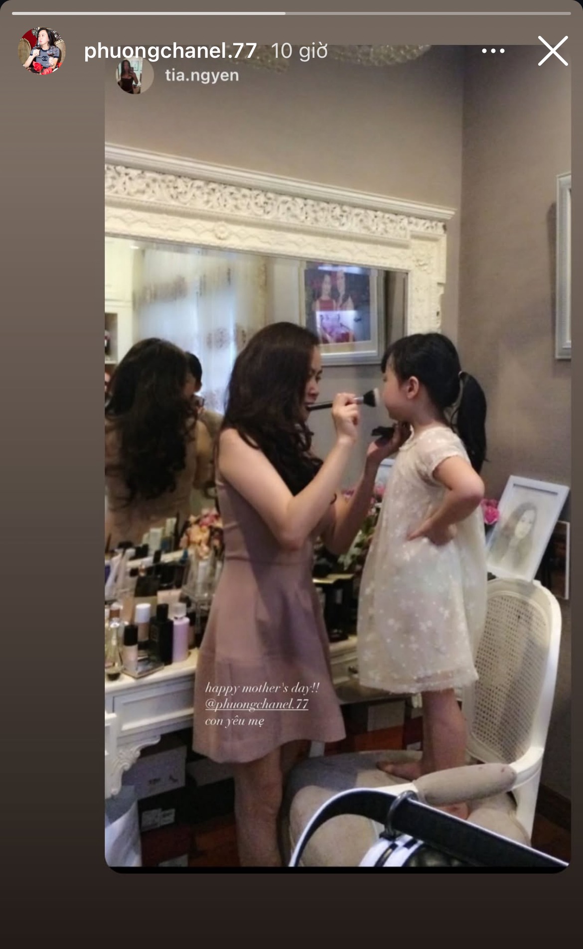 Tuy nhiên, sau hơn 4 năm "đứt gánh", Quách Ngọc Ngoan bất ngờ có động thái "gây sốt" liên quan đến tình cũ Phượng Chanel. Cụ thể, nam diễn viên đã đăng tải lại bức ảnh do con gái riêng của Phượng Chanel chia sẻ để chúc mừng Ngày của Mẹ. Khoảnh khắc được chia sẻ ghi lại cảnh nữ doanh nhân ân cần chăm sóc con gái út - cũng chính là con chung của cô và Quách Ngọc Ngoan. Về phía Phượng Chanel, cô chỉ đơn thuần chia sẻ lại story của con gái mà không nhắc đến Quách Ngọc Ngoan.