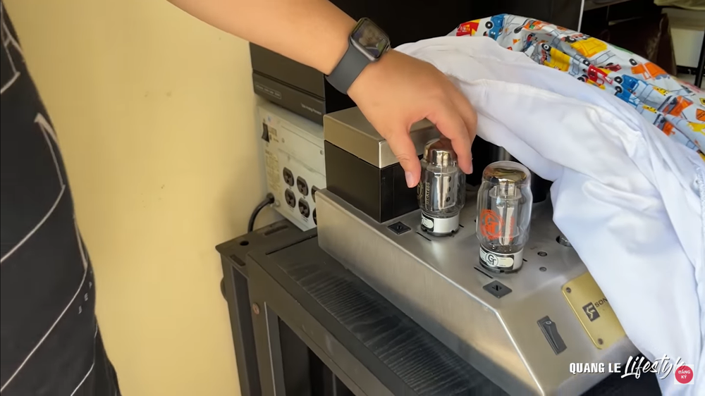 Nhà Quang Lê tại Mỹ khá giàu, có hẳn phòng giặt đồ riêng với hai máy giặt to. Anh còn khoe cả dàn máy chiếu phim mua 30 ngàn đô và dàn máy nghe nhạc mấy chục ngàn đô, riêng một cọng dây nối là 1 ngàn đô. Tất cả đều được anh vứt xó, ít khi dùng đến.