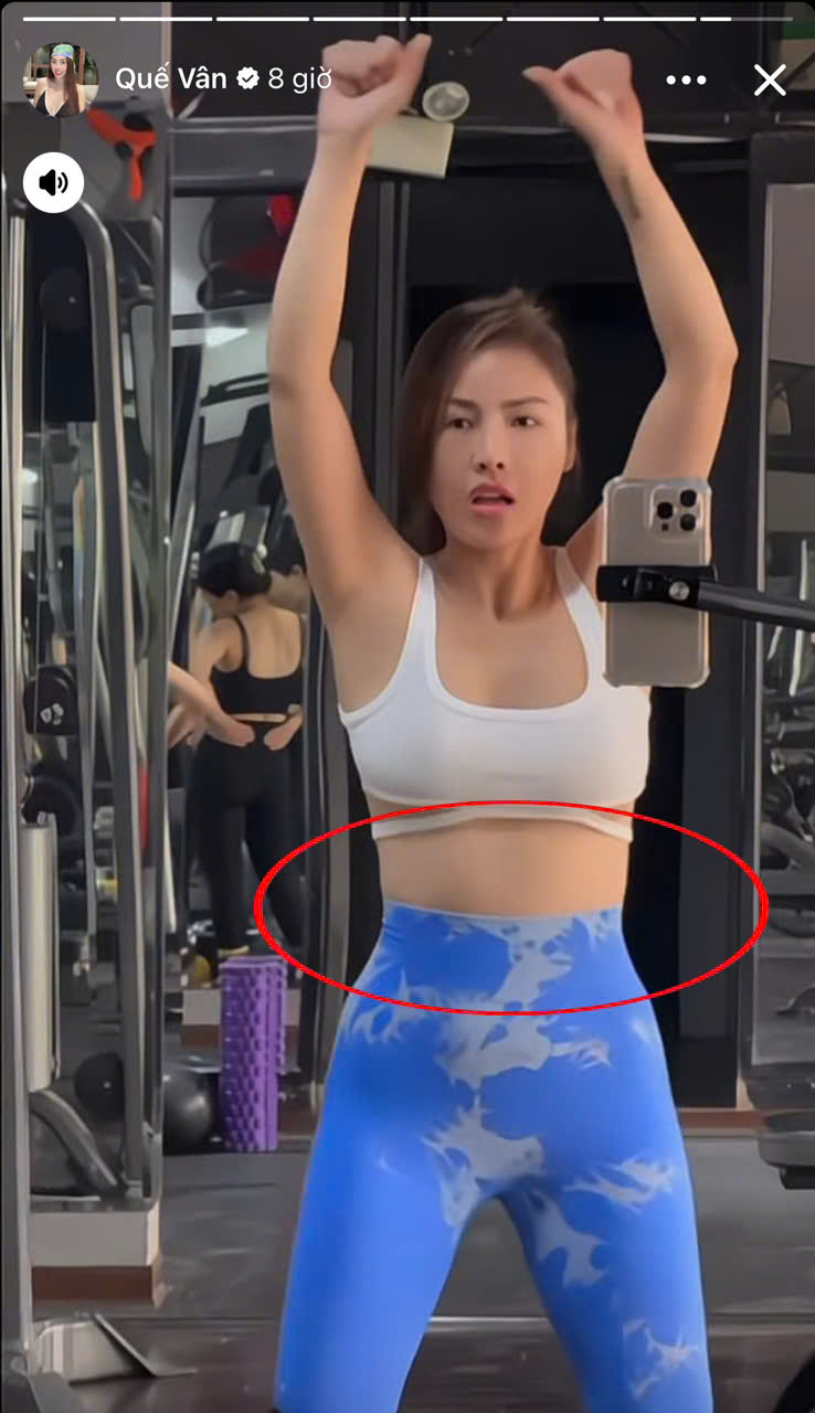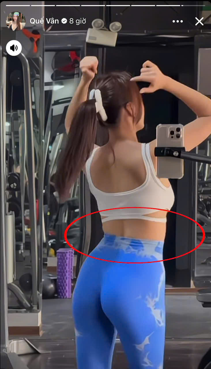 Vào ngày 2/12, cô gây chú ý khi đăng tải story nhún nhảy ở phòng tập gym. Trong clip, Quế Vân mặc trang phục bó sát khoe đường cong. Tuy nhiên, cư dân mạng nhanh chóng phát hiện ra điểm khác lạ khi nhìn đến vòng eo của người đẹp. Theo đó, hình ảnh cánh cửa ở phía sau cô đã bị móp méo trở nên biến dạng. Qua chi tiết này, netizen cho rằng Quế Vân đã sử dụng phần mềm chỉnh sửa để có vóc dáng thon gọn hơn.