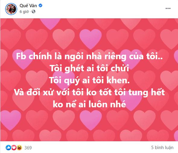 Trước động thái của Quế Vân, đông đảo cư dân mạng đã lên tiếng động viên cô và đồng loạt chỉ trích người đàn ông bội bạc kia: "Chị ơi, đàn ông đối xử lúc vợ có bầu thế này là không được. Người đàn ông yêu chị thật sẽ không bao giờ để những điều này xảy ra", "Vợ đang có bầu không biết kìm nén, còn đập phá đồ đạc, dù có giận vợ thế nào đi nữa sao không biết nghĩ cho đứa bé trong bụng vậy, bó tay", "Chồng đã trai gái, vũ phu thì bỏ đi làm mẹ đơn thân cho nhẹ gánh chị ơi", "Không đáng để làm chồng, làm cha"...