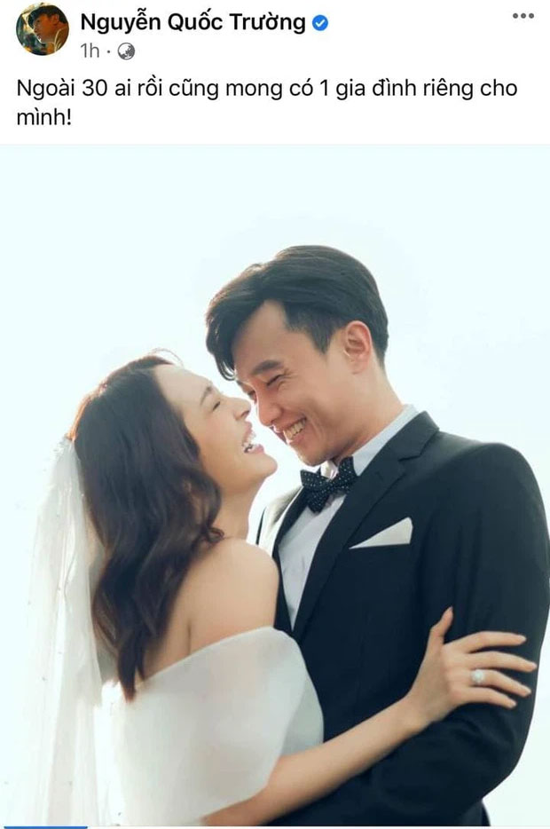 Mới đây, Quốc Trường vừa khiến dân tình cùng dàn sao Việt được một phen rần rần khi tung ra bức ảnh cưới chụp cùng Bảo Anh, kèm theo đó là dòng chia sẻ úp mở: "Ngoài 30 rồi ai cũng mong có 1 gia đình riêng cho mình".