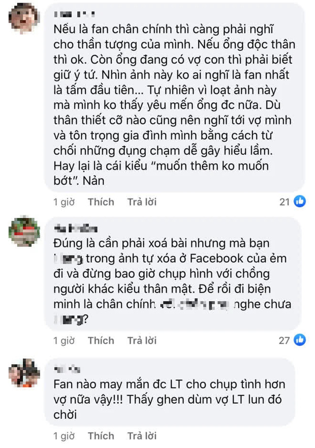 Tuy nhiên ngay dưới phần bình luận của nguồn tin trên, nhiều netizen dù đã nhận ra cô gái chụp cùng Lam Trường là người hâm mộ nhưng tỏ ra không hài lòng, chỉ trích với những hành động thân mật quá mức. Nhiều người cho rằng là dù là fan nhưng nên cần giữ khoảng cách với người đã có gia đình. Số khác lại bênh vực cho rằng cô nàng sinh sống tại nước ngoài nên cách thể hiện tình cảm khá thoải mái.