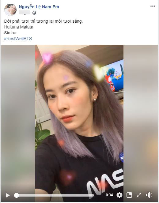 Mới đây, cô nàng lại tiếp tục khiến nhiều người hoang mang khi đăng tải clip đang phiêu hết mình theo đoạn nhạc gây nghiện trong ca khúc "Bad Guy" của Billie Eilish. Điều đáng nói, người đẹp còn gây chú ý khi để hashtag #RestWellBTS vốn là của cộng đồng ARMY (fanclub của BTS) trending trên MXH để chúc thần tượng của mình có một kỳ nghỉ vui vẻ sau 6 năm ra mắt. Chính hành động này của Nam Em đã khiến người hâm mộ của BTS không thể không liên tưởng đến đoạn clip ngắn mà em út vàng của nhóm - Jungkook - từng thực hiện với concept tương tự.