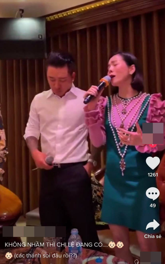 Lệ Quyên được phát hiện có vòng 2 nhô to bất thường trong một đoạn clip gần đây và khiến cộng đồng mạng nghi ngờ cô đang mang thai. Nữ ca sĩ xuất hiện trong buổi karaoke cùng ca sĩ Tuấn Hưng và nhóm bạn trong thời gian gần đây.