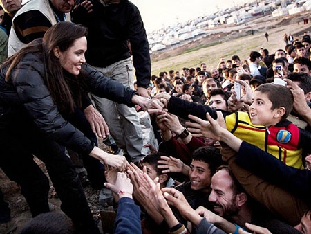 Angelina Jolie được chào đón nồng nhiệt tại trại tỵ nạn ở Iraq vào ngày 25/1/2015 vừa qua. |