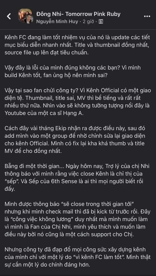 Vào chiều ngày 11/5, trên khắp các trang mạng xã hội bỗng rộ lên thông tin xấu về phía ê-kíp của Đông Nhi. Cụ thể, đã xuất hiện một bài đăng tố ê-kíp của Đông Nhi giành kênh YouTube để ủng hộ idol từ chính người hâm mộ của nữ ca sĩ. Chưa kể, các admin của kênh này cũng đã bị kick và không còn nắm được quyền điều hành khiến cộng đồng mạng vô cùng bức xúc.
