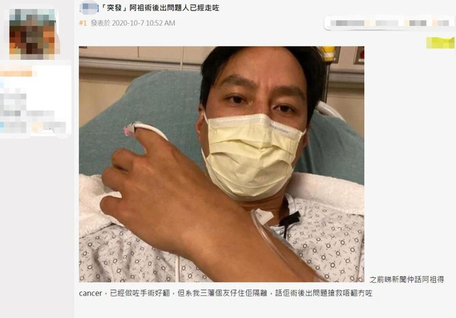 Ngày 7/10 vừa qua, trên mạng bất ngờ xuất hiện tin đồn Ngô Ngạn Tổ bị ung thư và sức khỏe đã dần hồi phục sau cuộc phẫu thuật gần đây. Tuy nhiên, nam tài tử sau đó lại gặp vấn đề khiến anh không thể chống đỡ được và qua đời. Nguồn tin này thậm chí còn tung ra hình ảnh nam diễn viên nổi tiếng nằm viện như một bằng chứng để chứng minh lời nói của mình là thật. Tin đồn này sau khi nổ ra đã khiến MXH xứ Trung được một phen dậy sóng.